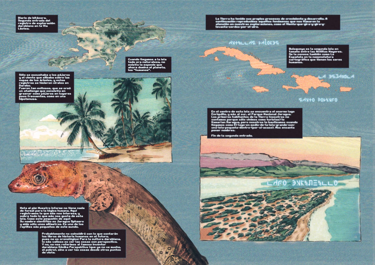 La biosfera que nos une es un cómic de 54 páginas que hemos realizado para la ONG Cesal a partir de su petición de crear un cómic que destacase y pusiese en valor la fauna y flora de Quisqueya, la isla en que se encuentran Rep. Dominicana y Haití; así como el trabajo de los y las cooperantes de la ONG.
