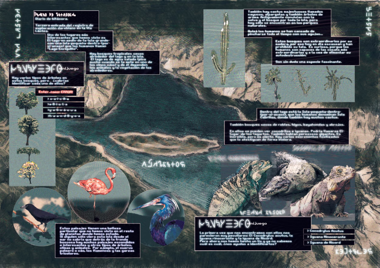 El cómic tiene a su vez una intrahistoria para poder dar algo más de información sobre las diferentes especies de la isla, y para realizarla Alba López utilizó un estilo de dibujo mucho más realista combinado con un tratamiento final de la imagen digital, pero con una sensación retro.