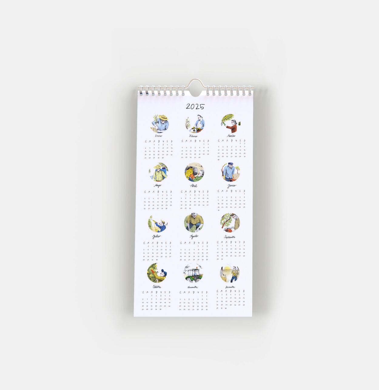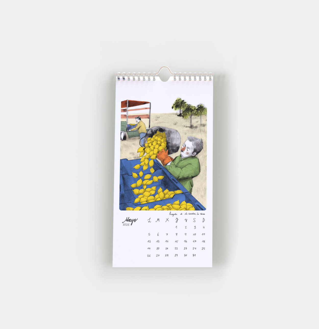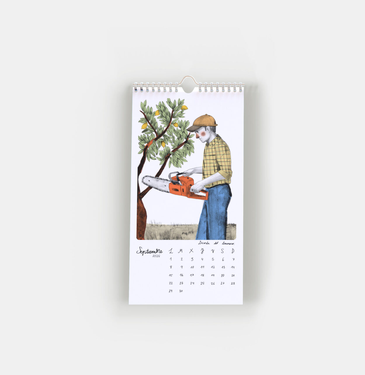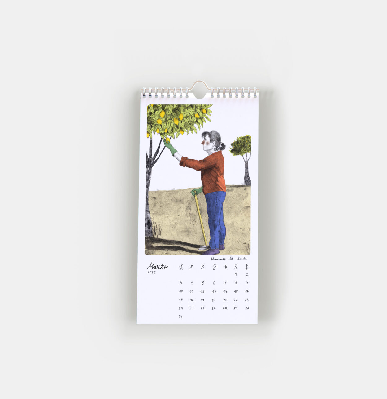 Calendario ilustrado 2025 en el que cada mes presenta una ilustración detallada del proceso necesario para el cultivo del limón.
