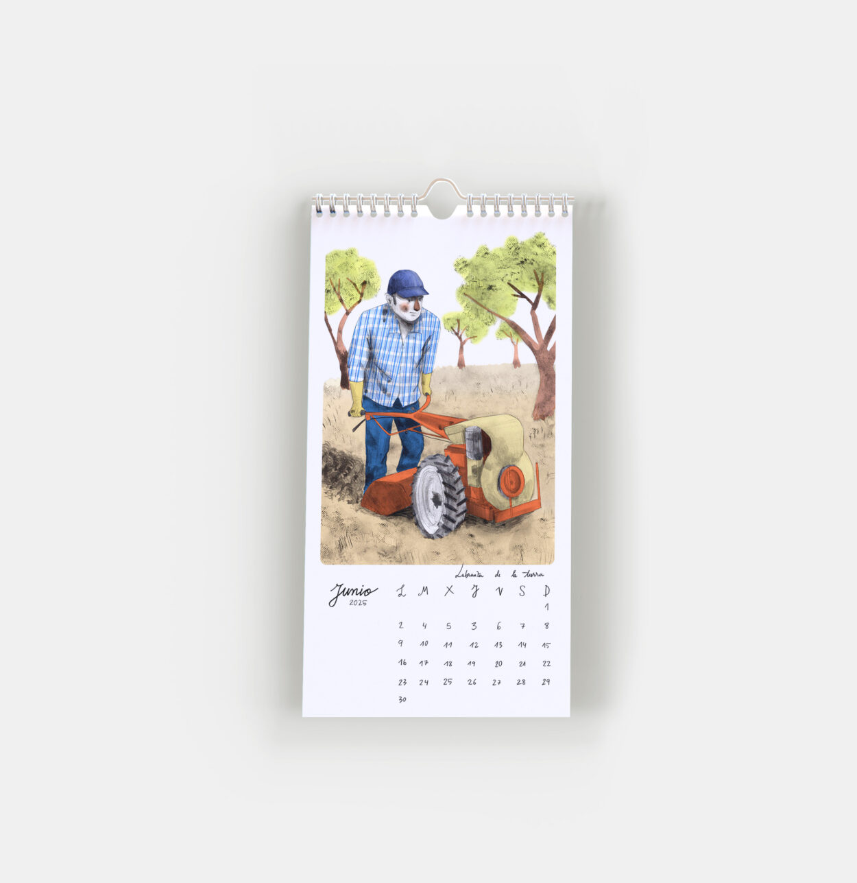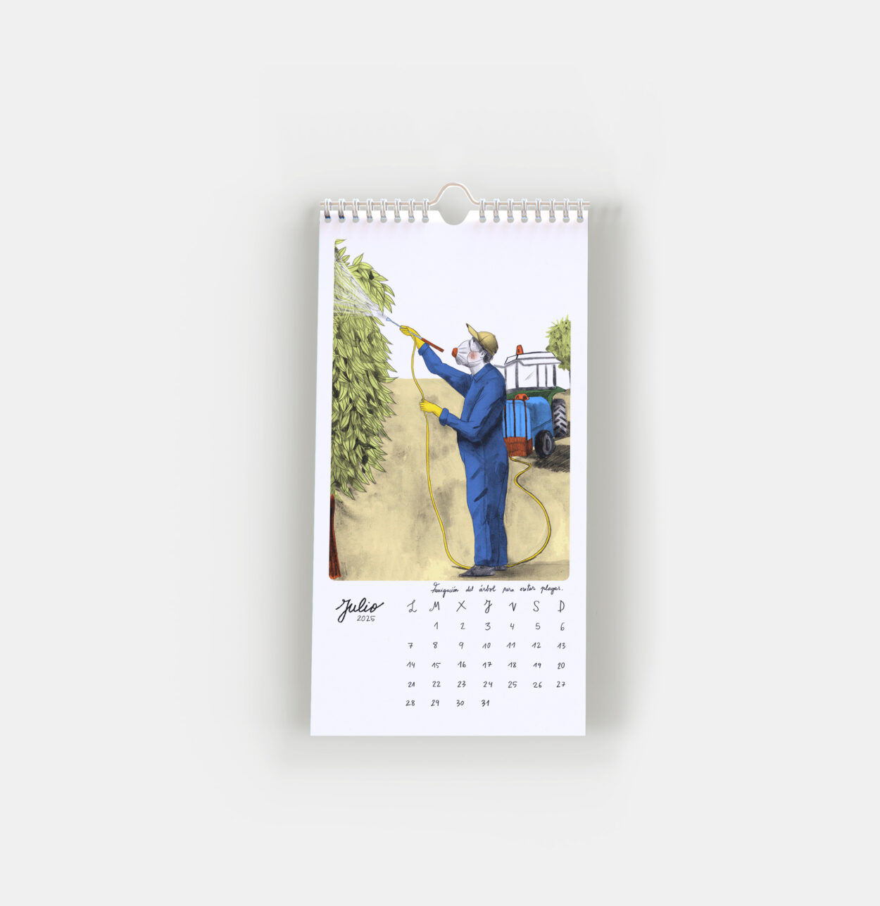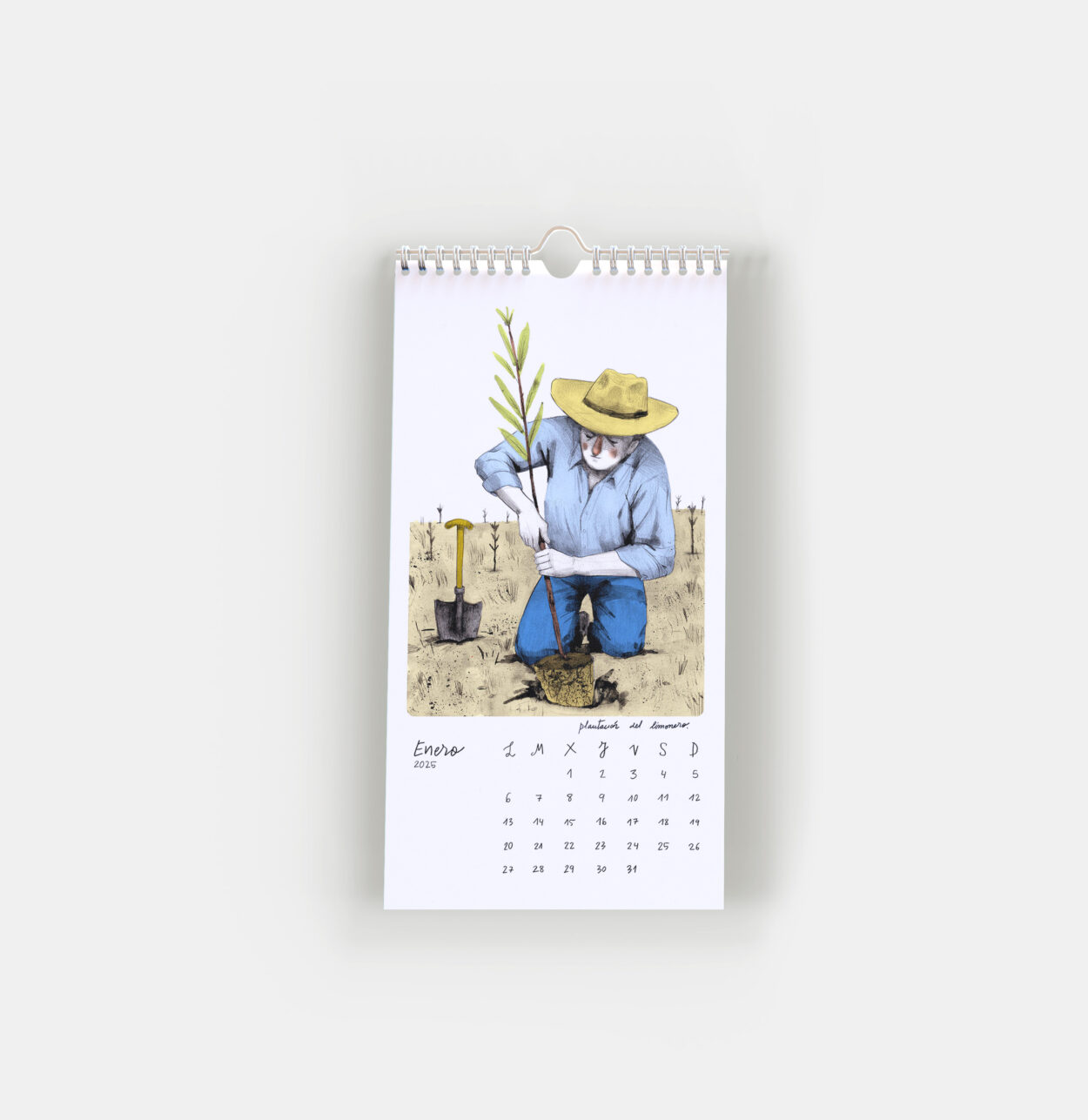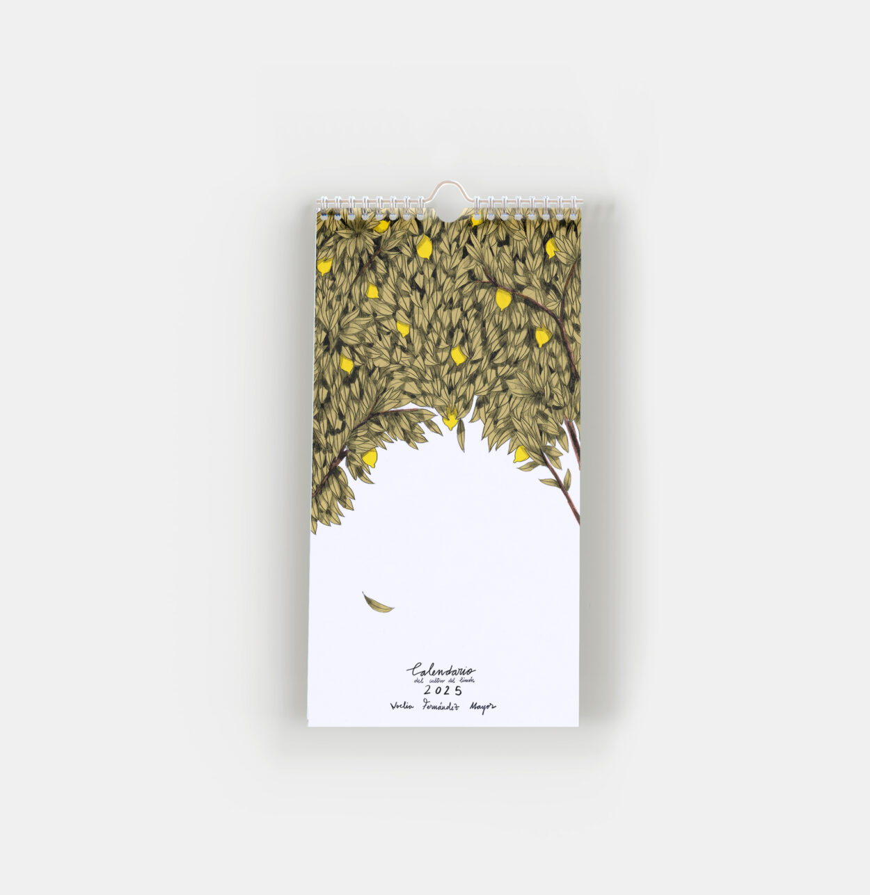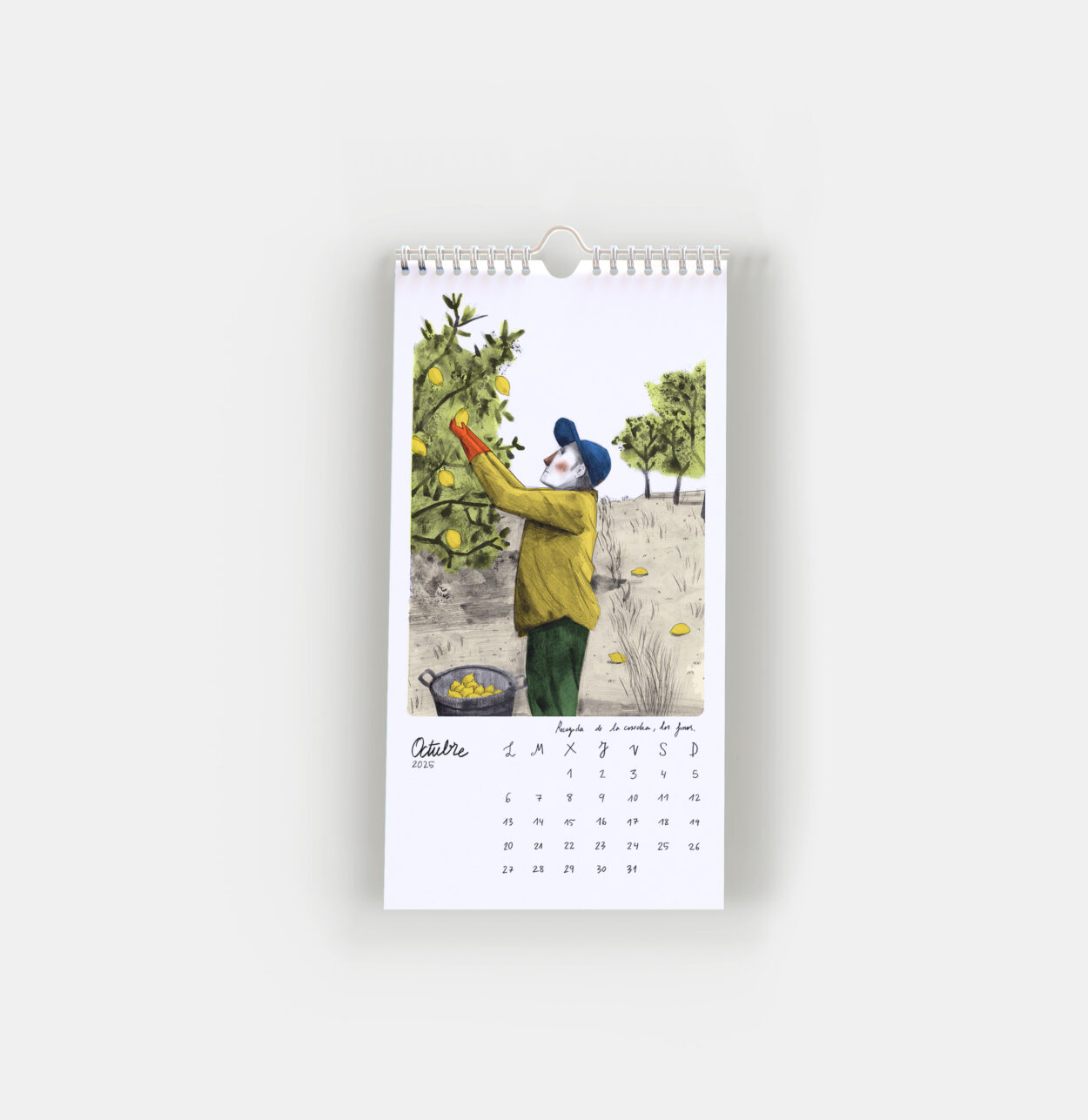 Calendario ilustrado 2025 en el que cada mes presenta una ilustración detallada del proceso necesario para el cultivo del limón.