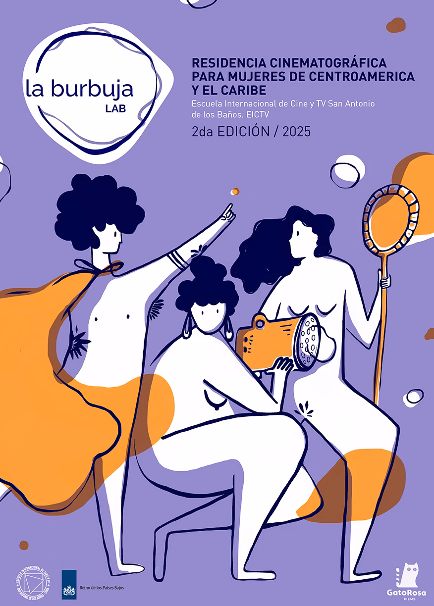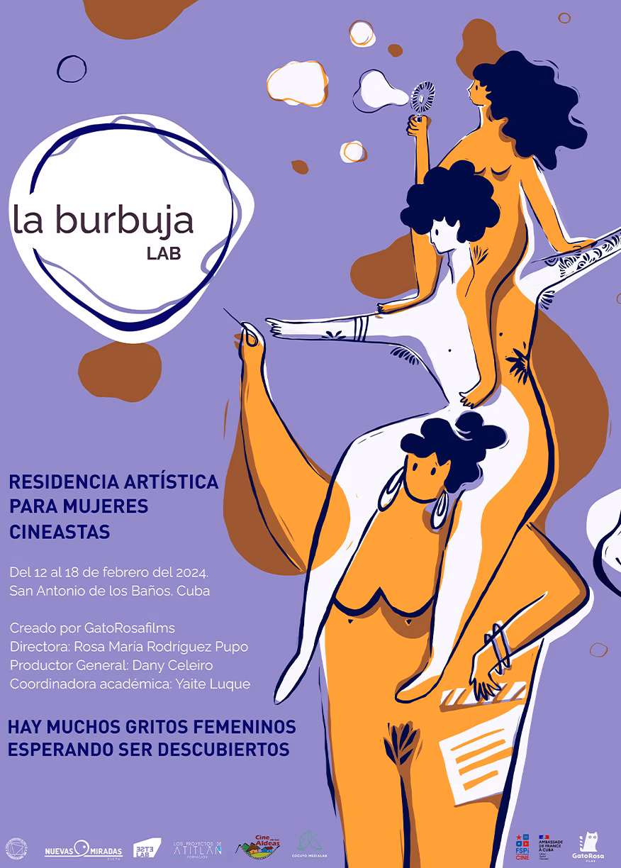 Cartel e imagen para La Burbuja Lab, Residencia Artísticas para mujeres cineastas de Centroamérica y el Caribe.
