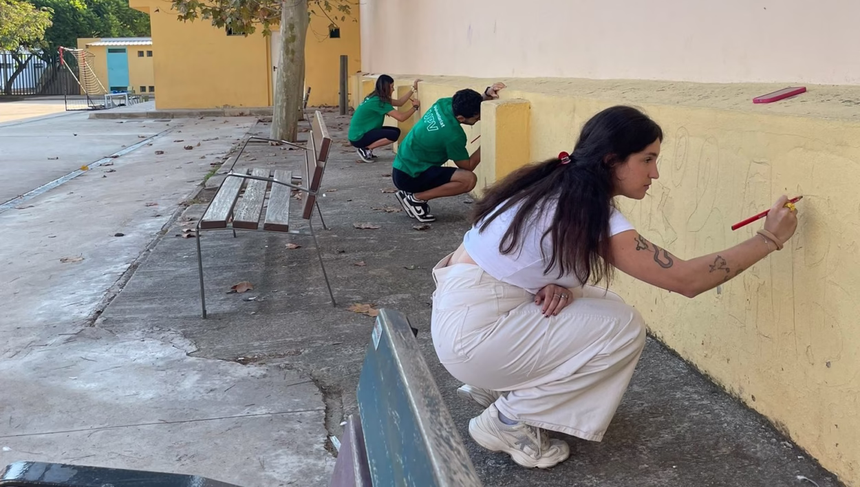 Fue un día intenso pero alegre, donde personas de diferentes carreras y profesiones nos juntamos para colorear con la ayuda de los más pequeños, los rincones más representativos del patio del colegio.