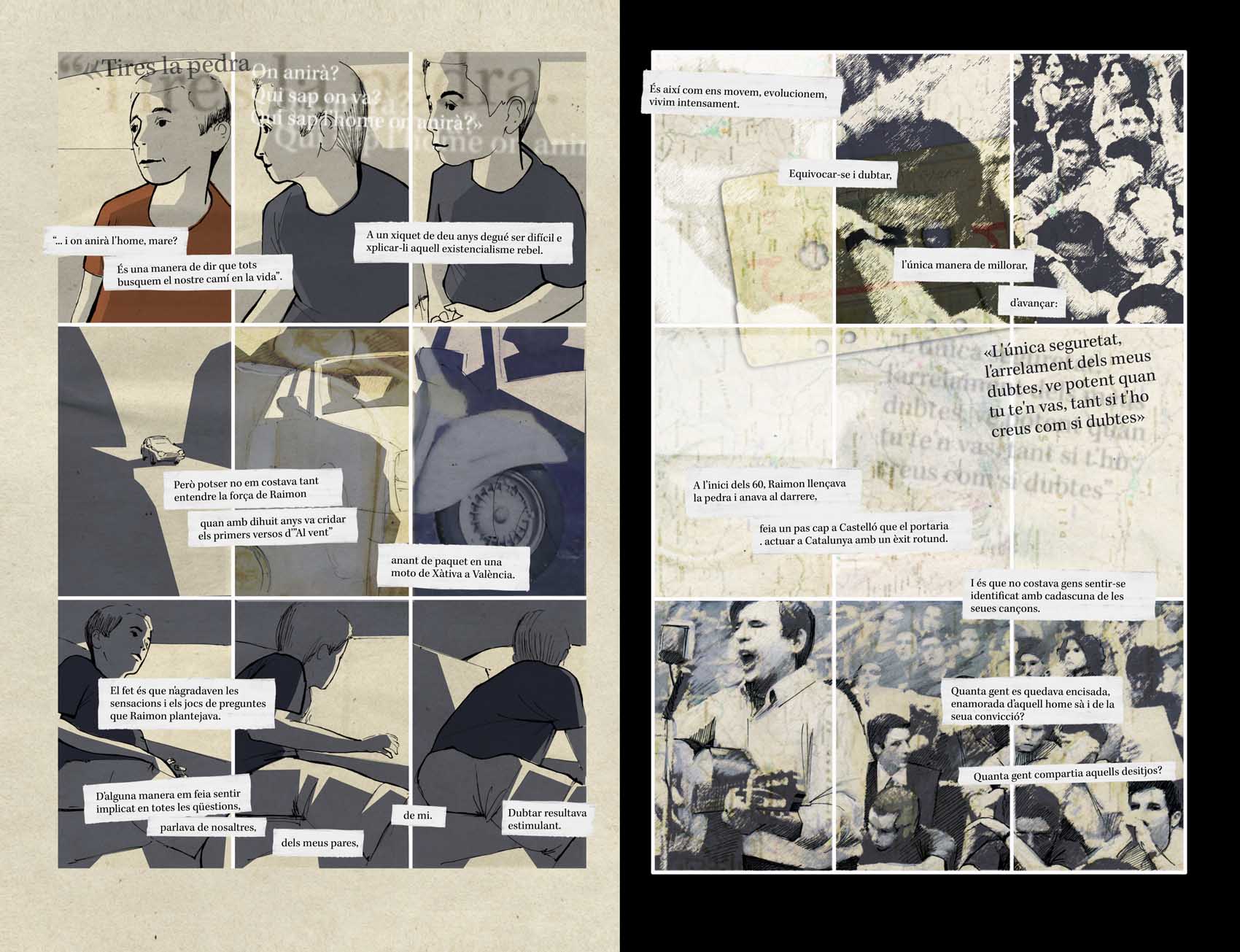 Disseny global del projecte Petjades del grup VerdCel. El treball inclou un còmic, un CD (amb 15 versions del cantautor Raimon) i un DVD (amb un curt i dos documentals inèdits sobre Raimon). Petjades és un viatge multimèdia per l’obra de Raimon des de la visió de VerdCel, després de 50 anys de la creació d’Al Vent. La història evoca al descobriment de Raimon des de la mirada d’un nen. El còmic o novel·la gràfica en aquesta ocasió té més pes que en altres treballs de VerdCel, un format més gran i allunyat del format clàssic de CD. El projecte està editat per BROMERA Edicions.