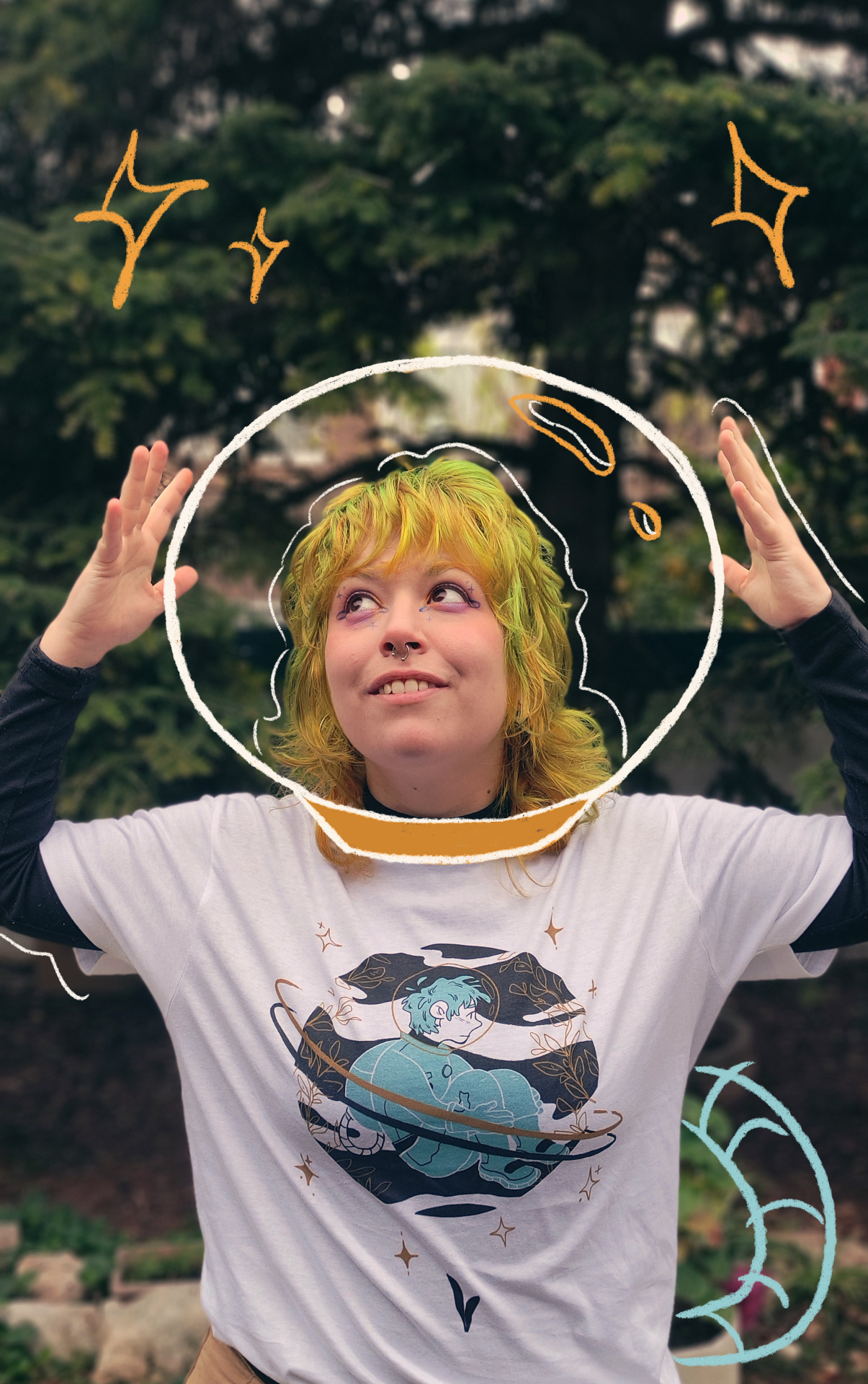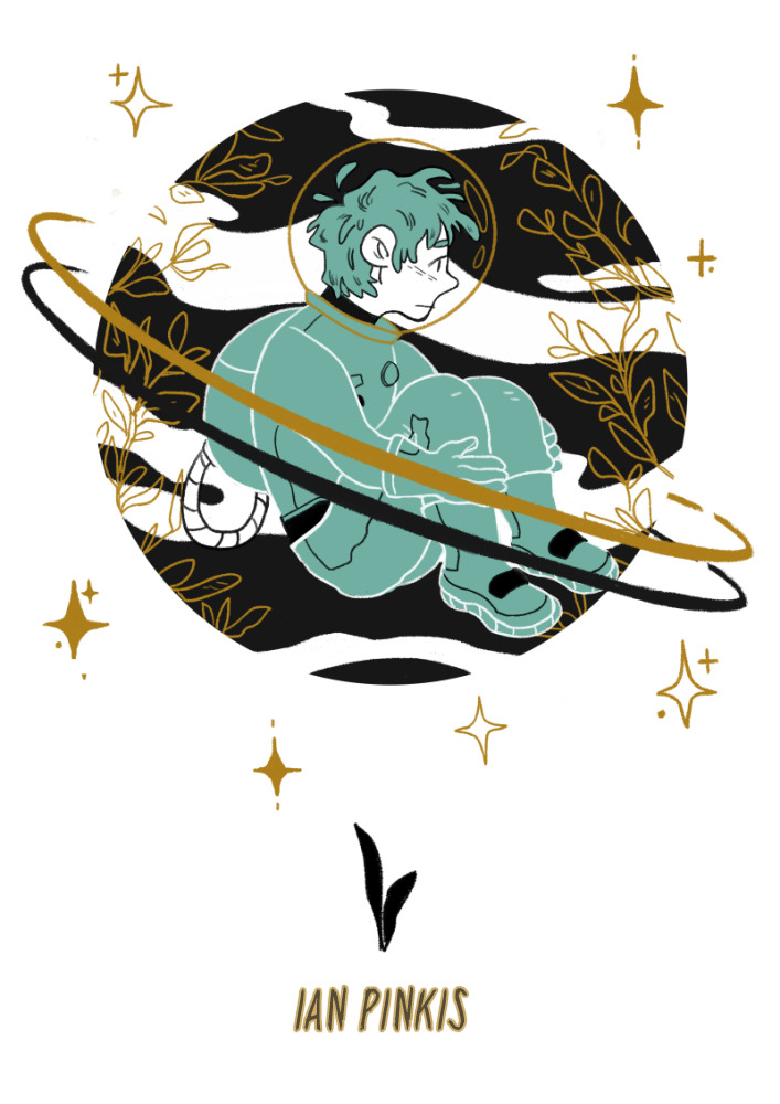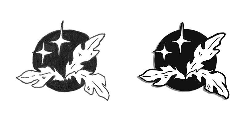 Basado en un pequeño logo del sketchbook, que después utilizo como logo propio en diferentes cosas. Expresa cosas que añado a dibujos e ilustraciones como las plantas y los brillos.