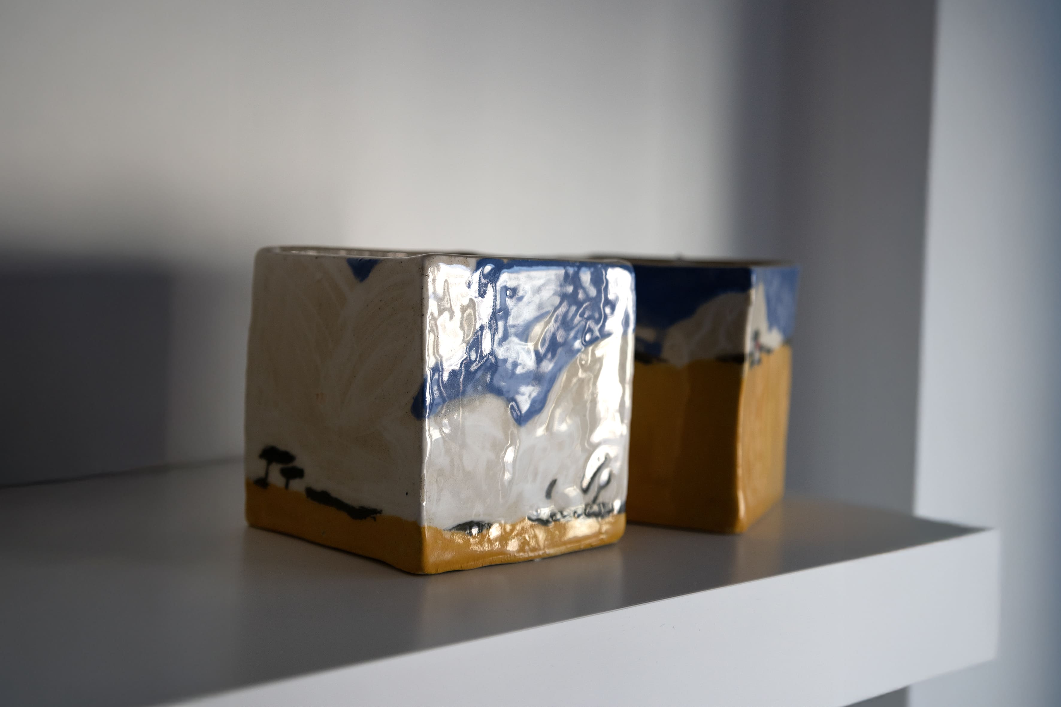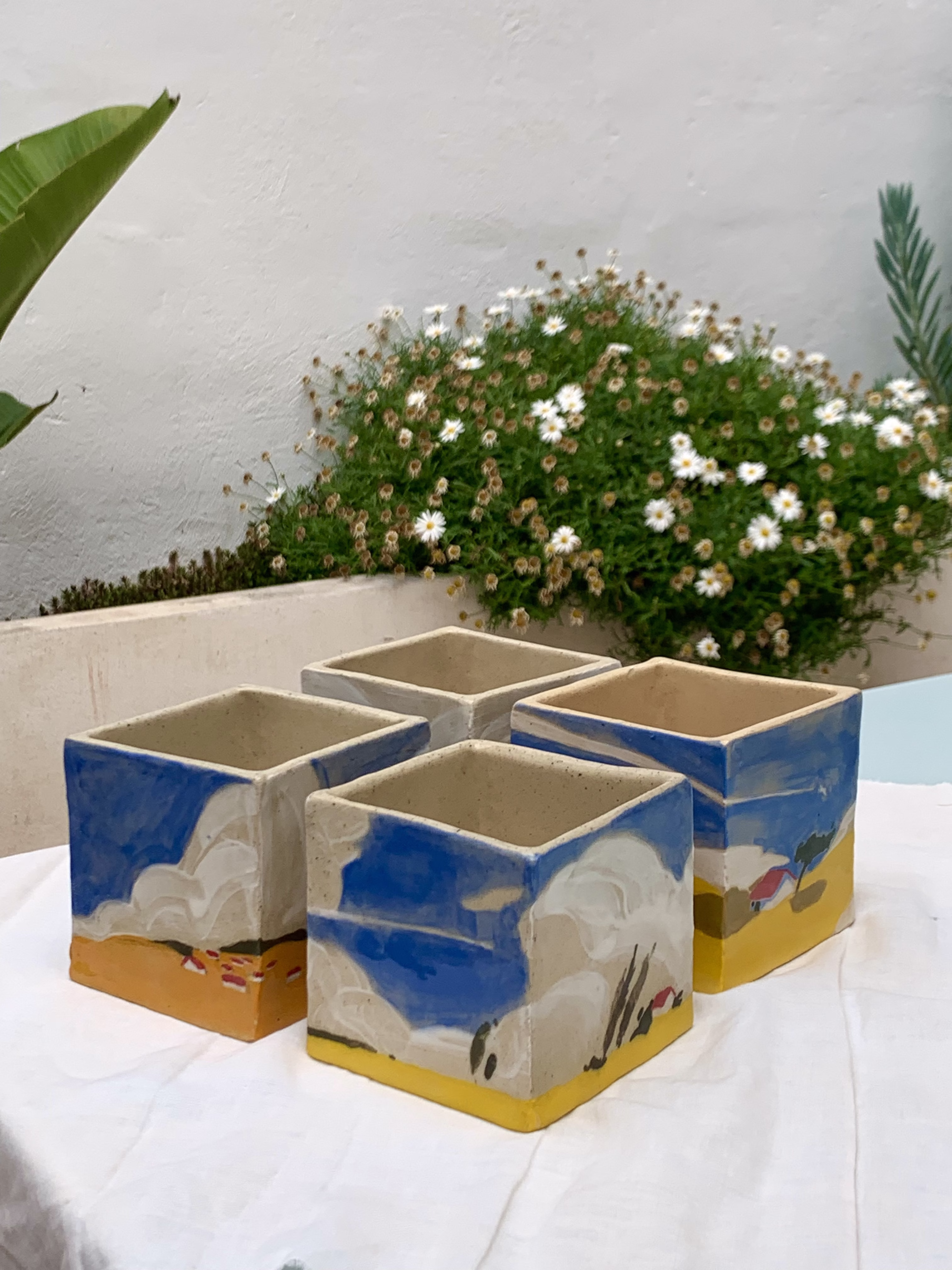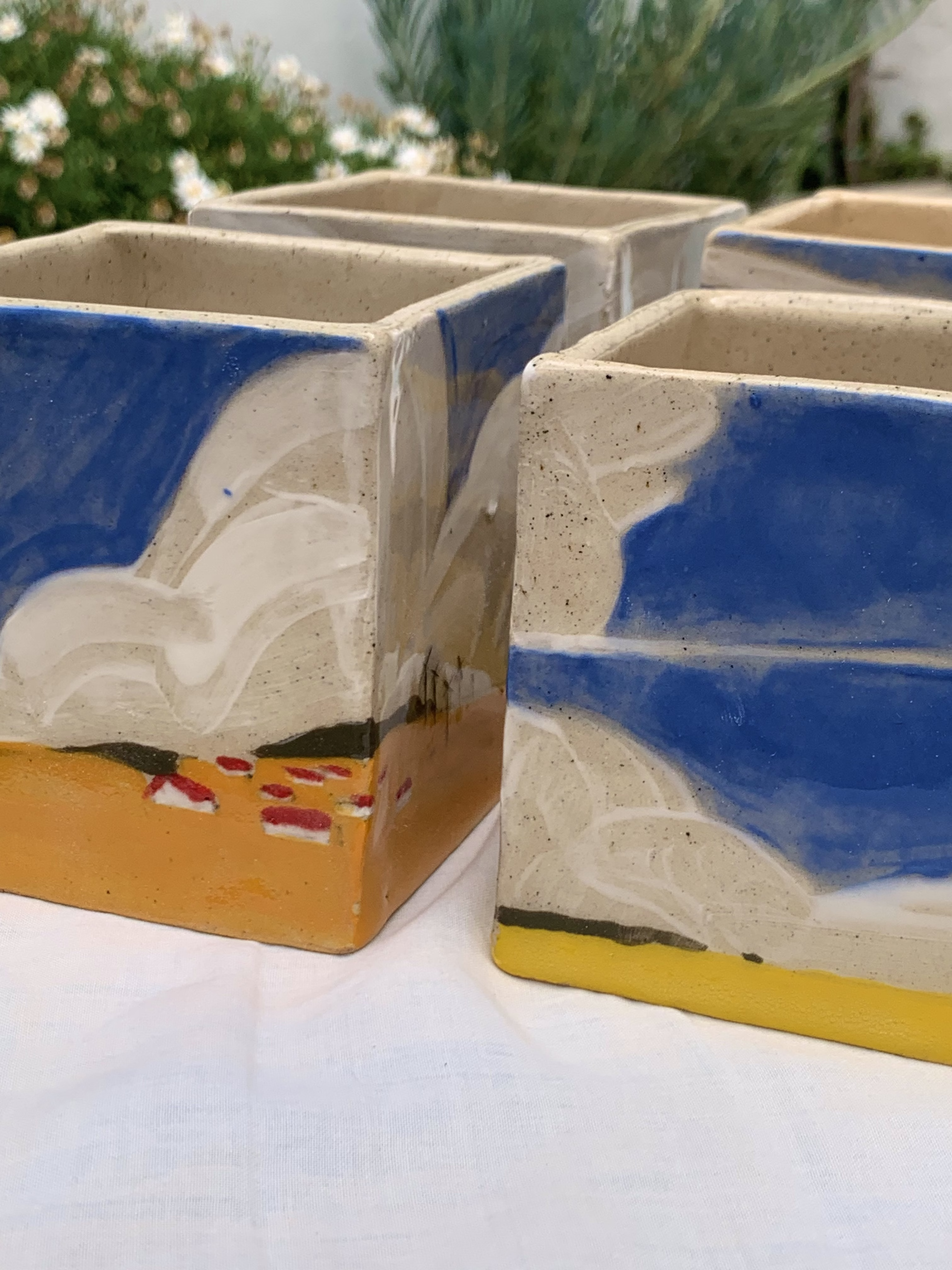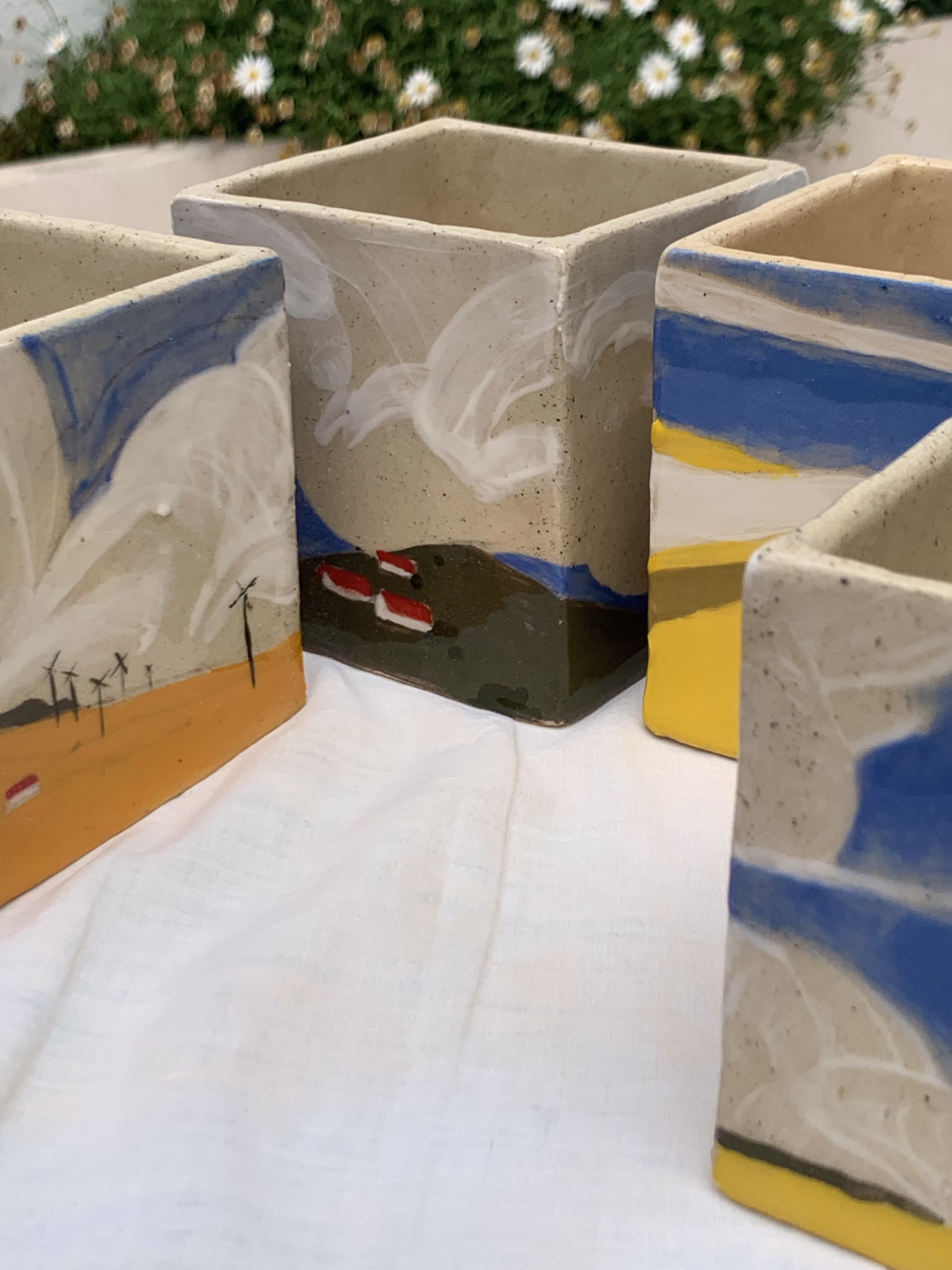 Proyectos de cerámica Guiomar Martín 294 Visualitzacions Proyectos de cerámica Producte- Guiomar Martín 294 Visualitzacions Compartir Piezas de ceramica de 15x15x15cm. Decoración con paisajes de Castilla. Juego de tazas realizado a mano. Compartir